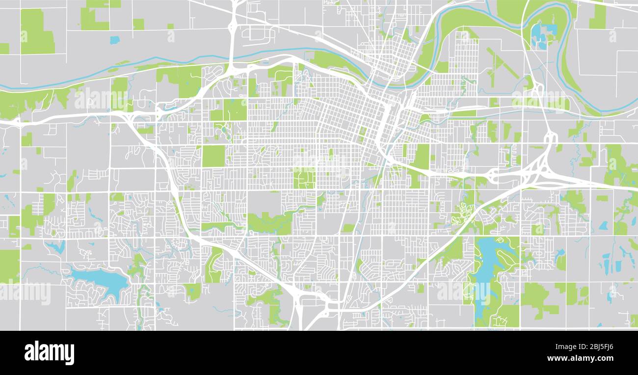Urban vector city map of Topeka, USA. Kansas state capital Stock