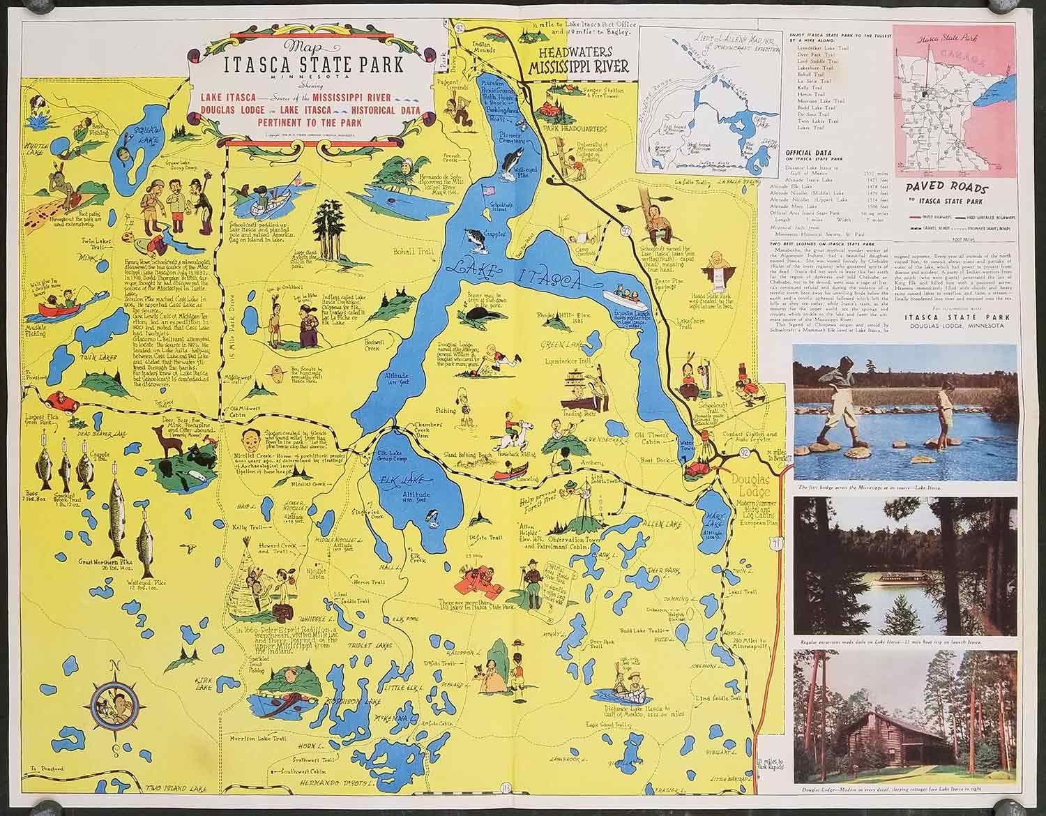 BIBLIO | Map Itasca State Park Minnesota Showing Lake Itasca