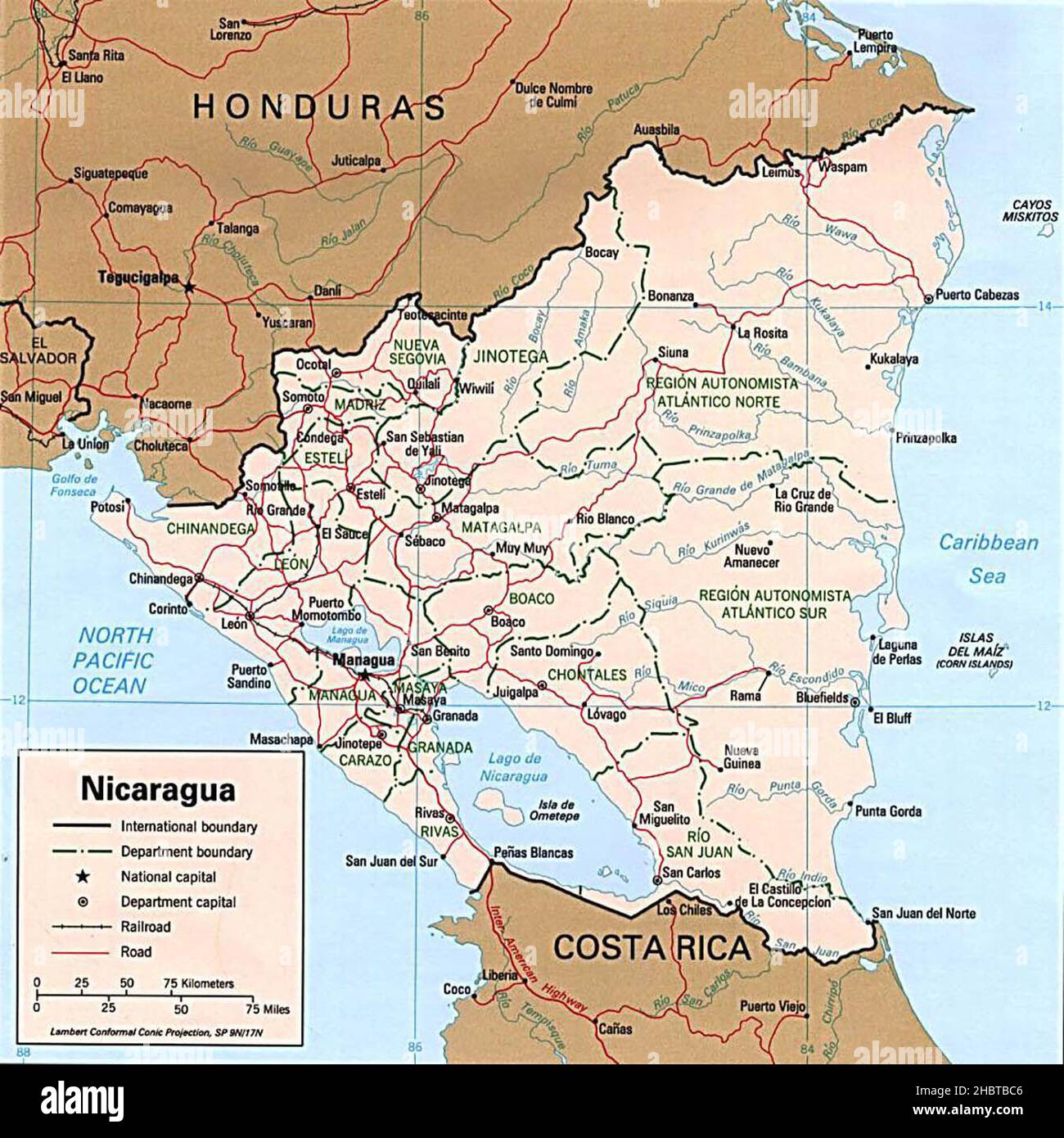 Nicaragua Political Map Administrative Divisions Departments Stock